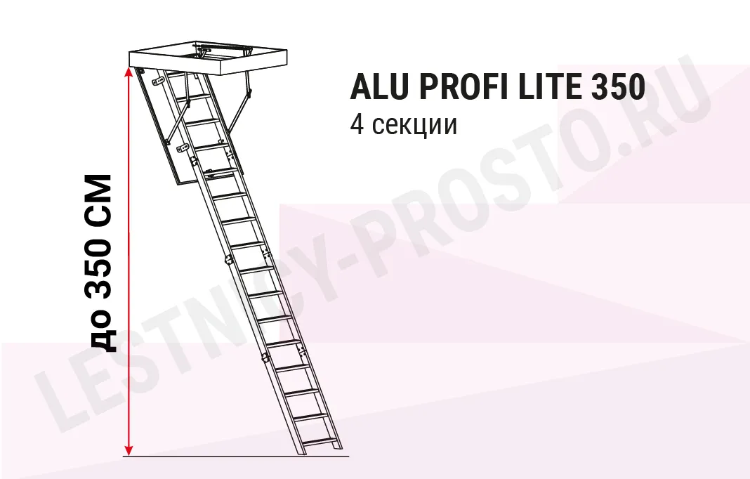 | Чердачная лестница алюминиевая с люком OMAN ALU PROFI LITE LONG 60х120 см, h-350 см |