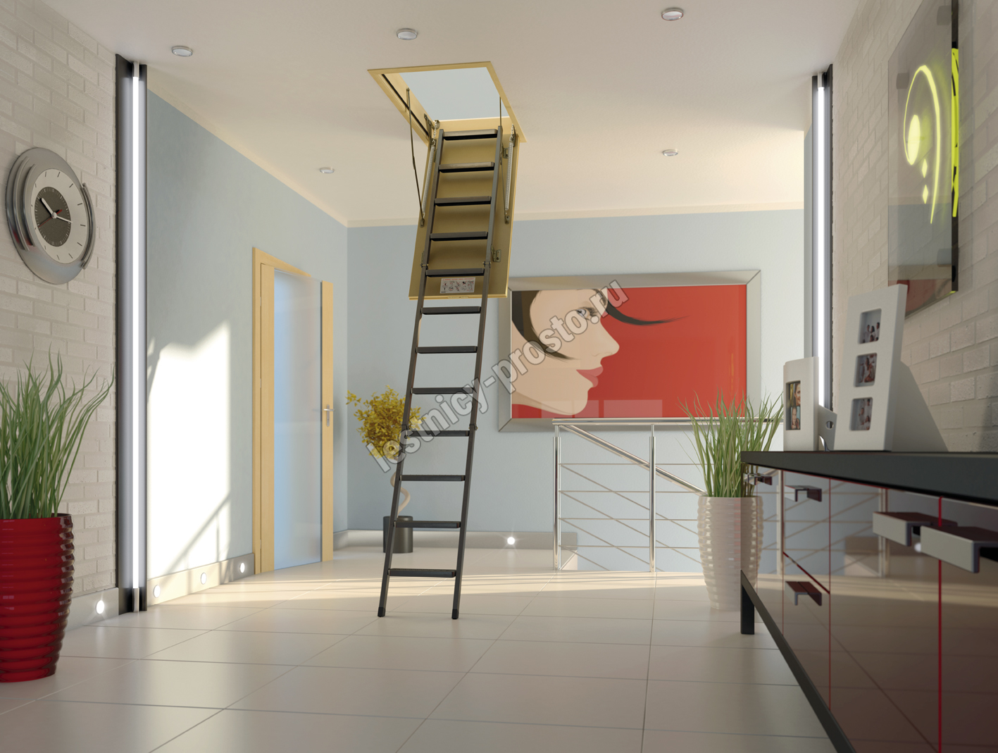 Чердачная металлическая лестница LMS – это надежная складная конструкция, состоящая из марша и термоизоляционной крышки, изготовленной из ДВП и окрашенной в бежевый цвет. Герметичность всей конструкции достигается благодаря утеплению крышки люка и контурному уплотнению по периметру, что предотвращает возможные теплопотери. Чердачную лестницу очень легко разложить и сложить благодаря наличию специального стержня с четырехугольной насадкой. Установленные в лестнице угловые петли-шарниры нового образца придают ей высокую прочность и надежность, а также предохраняют короб от возможной деформации. Основное преимущество чердачной складной металлической лестницы LMS сводится к ее небольшим габаритам при сохранении высокой функциональности, прочности, надежности и эстетичности конструкции. Монтировать лестницу очень просто, для этого не придется затрачивать много времени и сил. Применение лестничной конструкции этого типа позволяет существенно экономить пространство. Монтажный комплект LXK в комплекте не поставляется.