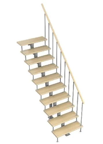 Лестничный марш выполнен из металла, покрытого порошковой краской, на ступенях сделаны специальные противоскользящие насечки. Для максимального комфорта и безопасности подъема лестница оснащена боковым металлическим поручнем красного цвета. Для правильного и быстрого монтажа рекомендуется дополнительно приобретать монтажный комплект LXK.