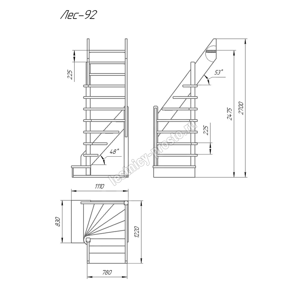 Размеры лестницы в 3-х упаковках: 2220×310×120 см. - 28,5 кг. 1810×290×120 см. - 30 кг. 1520×420×120 см. - 20,5 кг.