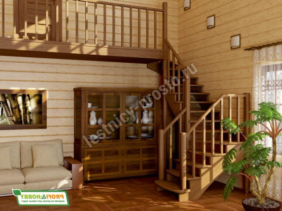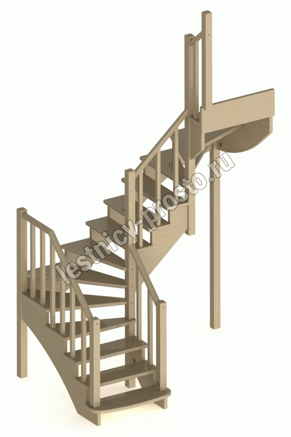 Базовый комплект включает в себя деревянные элементы лестницы и ограждения без какого-либо покрытия.