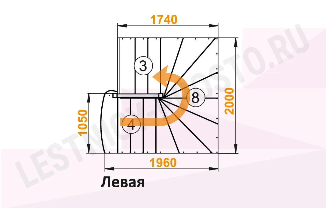 Схема лестницы К-103М с поворотом налево