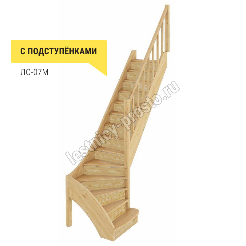 Базовый комплект включает в себя деревянные элементы лестницы с подступёнками и ограждения без какого-либо покрытия.