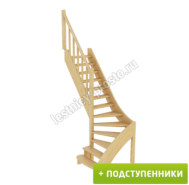 Базовый комплект включает в себя деревянные элементы лестницы с подступёнками и ограждения без какого-либо покрытия.