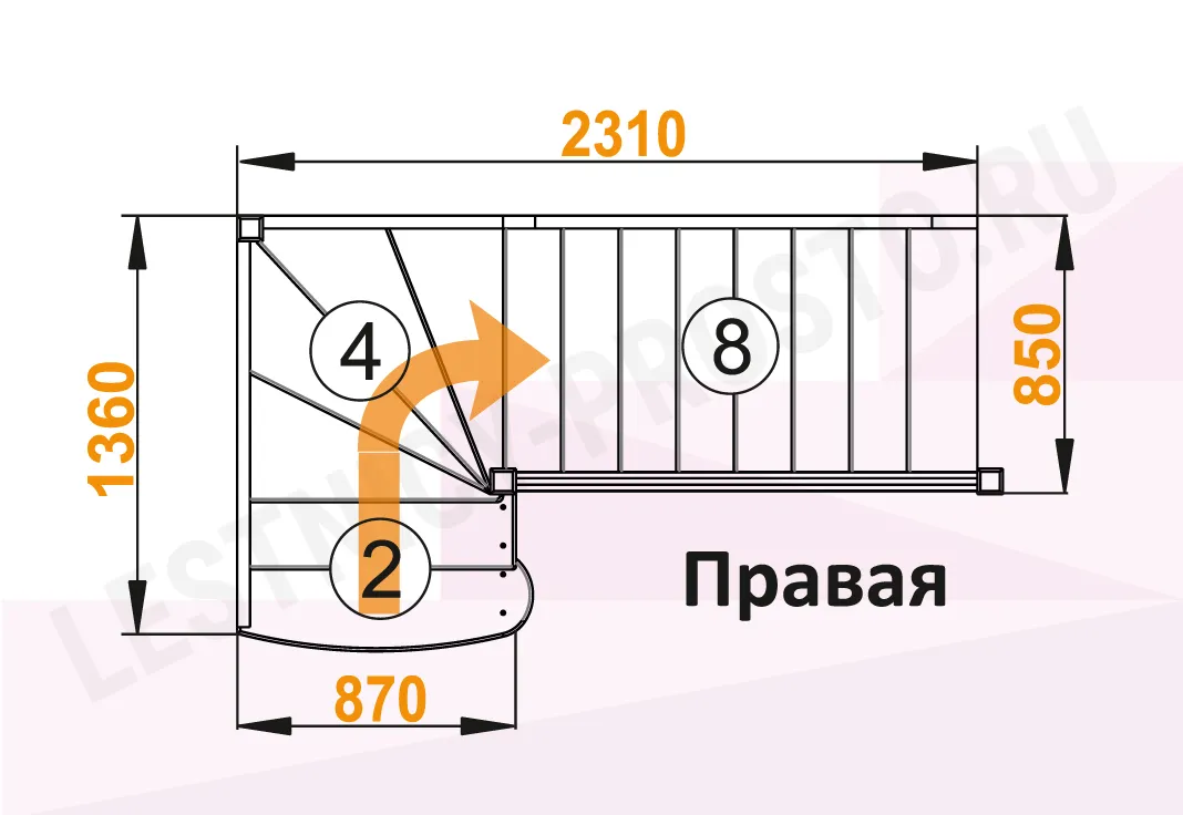 Схема лестницы ЛС-07М/5 с поворотом направо