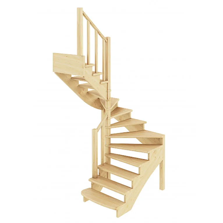 Базовый комплект включает в себя деревянные элементы лестницы и ограждения без какого-либо покрытия.