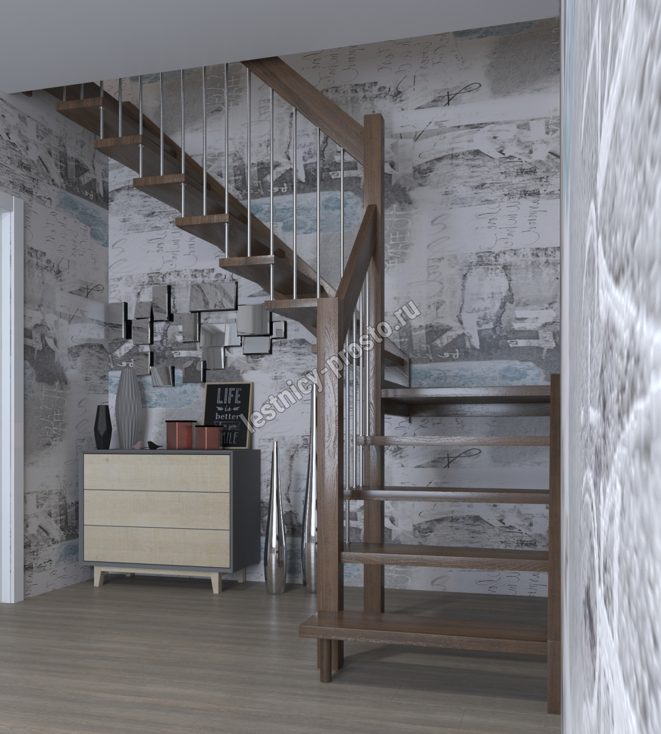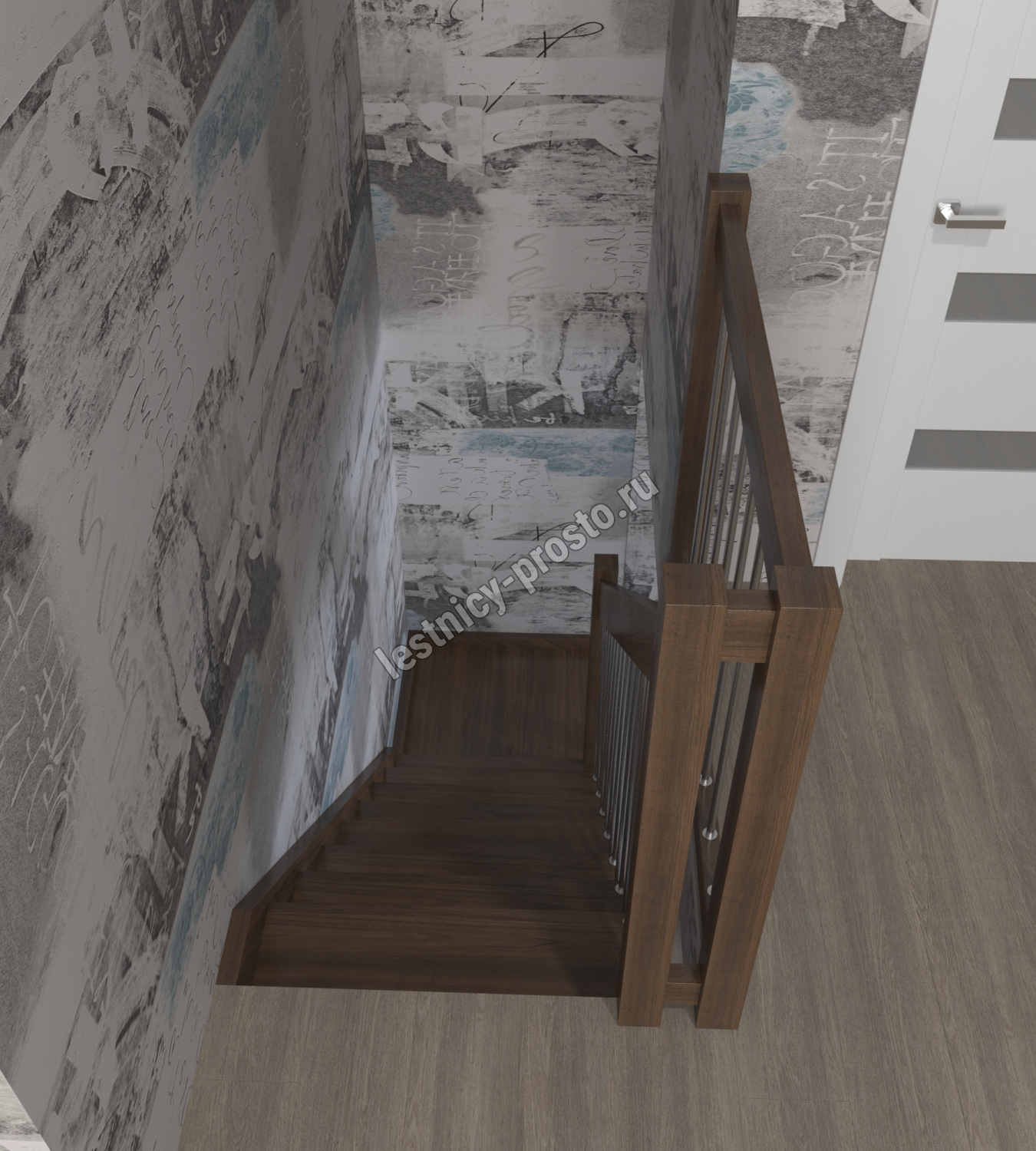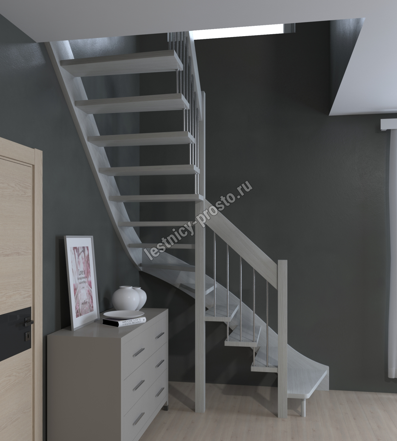 Лестница Prosto Console г-образная забежная дуб, h292.5 см (12 ступеней)