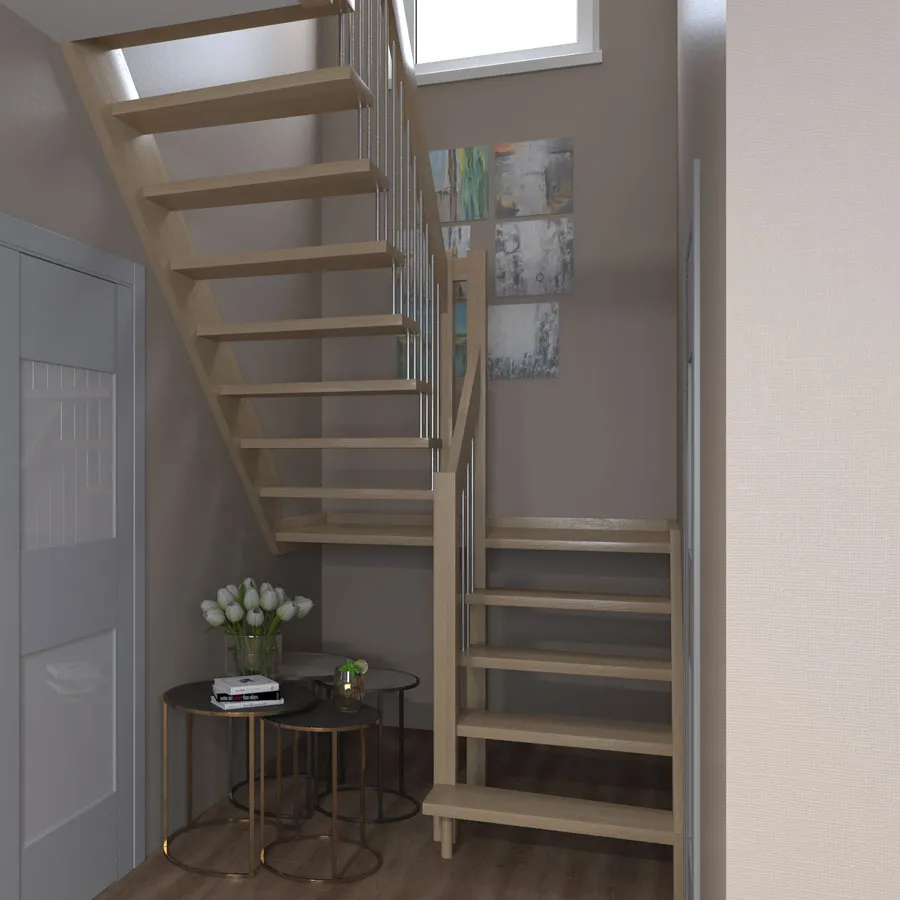 Надёжная современная лестница выполнена по немецкой технологии. Стоимость указана для лестницы с ограждением (с одной стороны); Поставляется в разобранном виде, в комплекте необходимый крепёж; Лестницу можно собрать самостоятельно; Так же, вы можете заказать услугу монтажа нашими специалистами; 4 вида породы дерева для изготовления лестницы: сосна, бук, ясень, дуб; возможна комбинированная лестница: из сосны (ступени бук, ясень, дуб); Деревянные элементы без какого-либо покрытия, отшлифованы, готовы к покраске. За дополнительную плату, вы можете изменить любые параметры, а именно: увеличить глубину ступени; увеличить ширину марша до 900 мм. и выше; заказать подступенки к лестнице; заказать отделку перекрытия (между 1-м и 2-м этажами); изготовить дополнительный промежуточный марш; заказать ограждение 2-го этажа; покраска в любой цвет или несколько цветов или покрытие защитными средствами; дополнение балясины из нержавеющей стали деревянными элементами; покраска балясин из нержавеющей стали порошковой краской в цвет RAL.