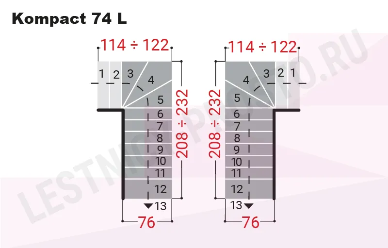 Модульная лестница Kompact 74 Г-образная