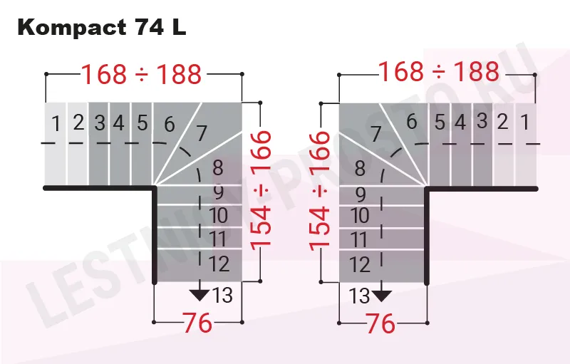 Вариант сборки лестницы Kompact 74