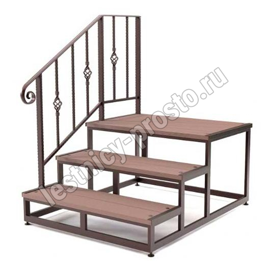 Приставная уличная лестница Prosto podium M2 с ограждением с одной стороны. Ограждение данной модели оснащено поручнем из металла. Подойдет к дому, крыльцу, хоз. постройкам или к любым другим бытовым строениям. Преимущество данной конструкции лестницы – возможность установки на неподготовленную поверхность. Лестница ставится на 4 ножки-опоры регулируемые по высоте. В отличии от других производителей требующих ровную поверхность для установки, так как они устанавливаются непосредственно на каркас.