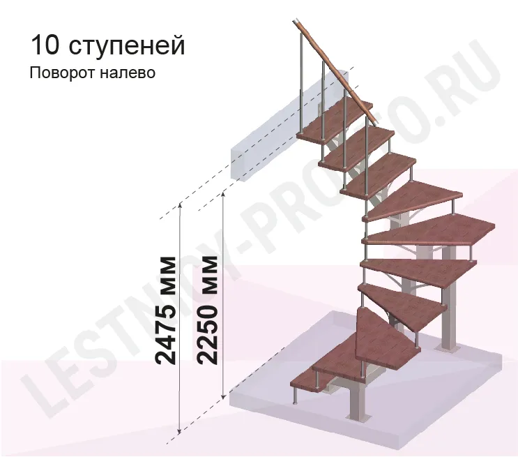 Высота лестницы 2250 - 2475 (10 ступеней) мм