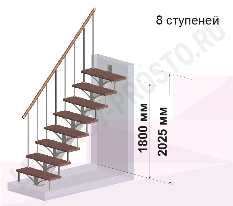 Лестница PROSTO MONO прямая, h202.5 см, ступени бук