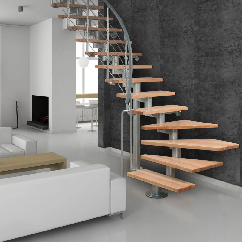 ATRIUM DIXI PLUS - это современная и удобная лестница, занимающая сравнительно мало места. В набор входят 11 конструктивных элементов и 11 ступеней из массивного лакированного дерева (8 прямых ступеней и 3 поворотные ступени). Есть возможность регулировать высоту ступеней. В комплект входят перила с вертикальными стойками и горизонтальными перегородками.