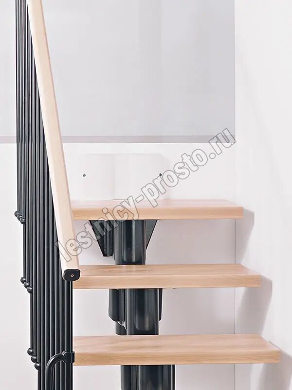 Красивая комфортная лестница с уникальной модульной конструкцией, которая позволяет собрать большое число модификаций, подходящих под ваш проём и другие условия помещения. Возможные варианты сборки лестницы смотрите в блоке "чертежи и схемы". При монтаже модульной лестницы KOMPACT, вы можете варьировать высоту шага и проступь, получив точную необходимую высоту и габариты. Лестница KOMPACT возможна в двух вариантах: с шириной марша 740 мм и 890 мм. Ступени выполнены из массива бука и покрыты качественным износостойким лаком. Базовая комплектация позволяет получить лестницу под высоты этажа в диапазоне 2250 - 3030 мм, кроме того, установив дополнительный комплект увеличения высоты, можно поднять высоту лестницы до 3730 мм. Каркас и стойки ограждения выполнены из пластифицированного металла.