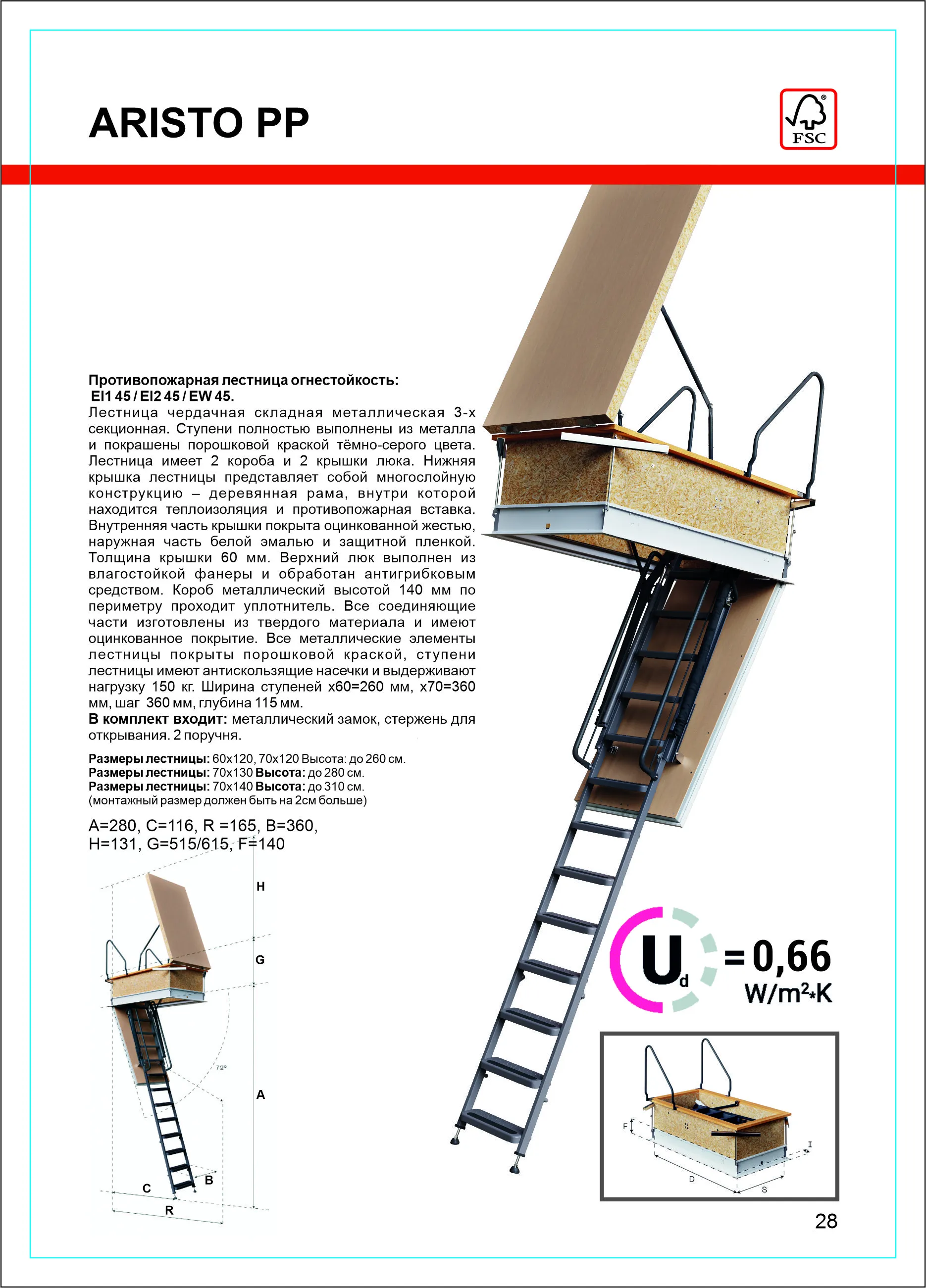 Универсальная, модульная лестница позволяет регулировать высоту шага в диапазоне 200 - 240 мм.
