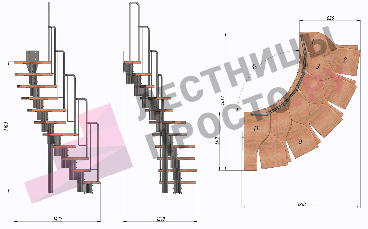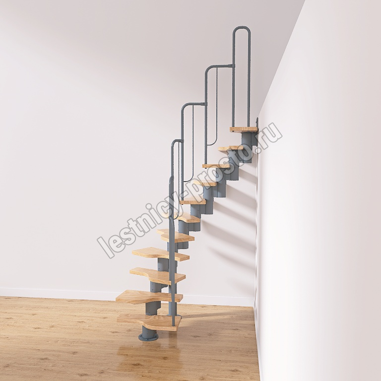 Лестница Prosto Urban Grey г-образная гусиный шаг 600 мм, h198-288 см (11 ступеней)