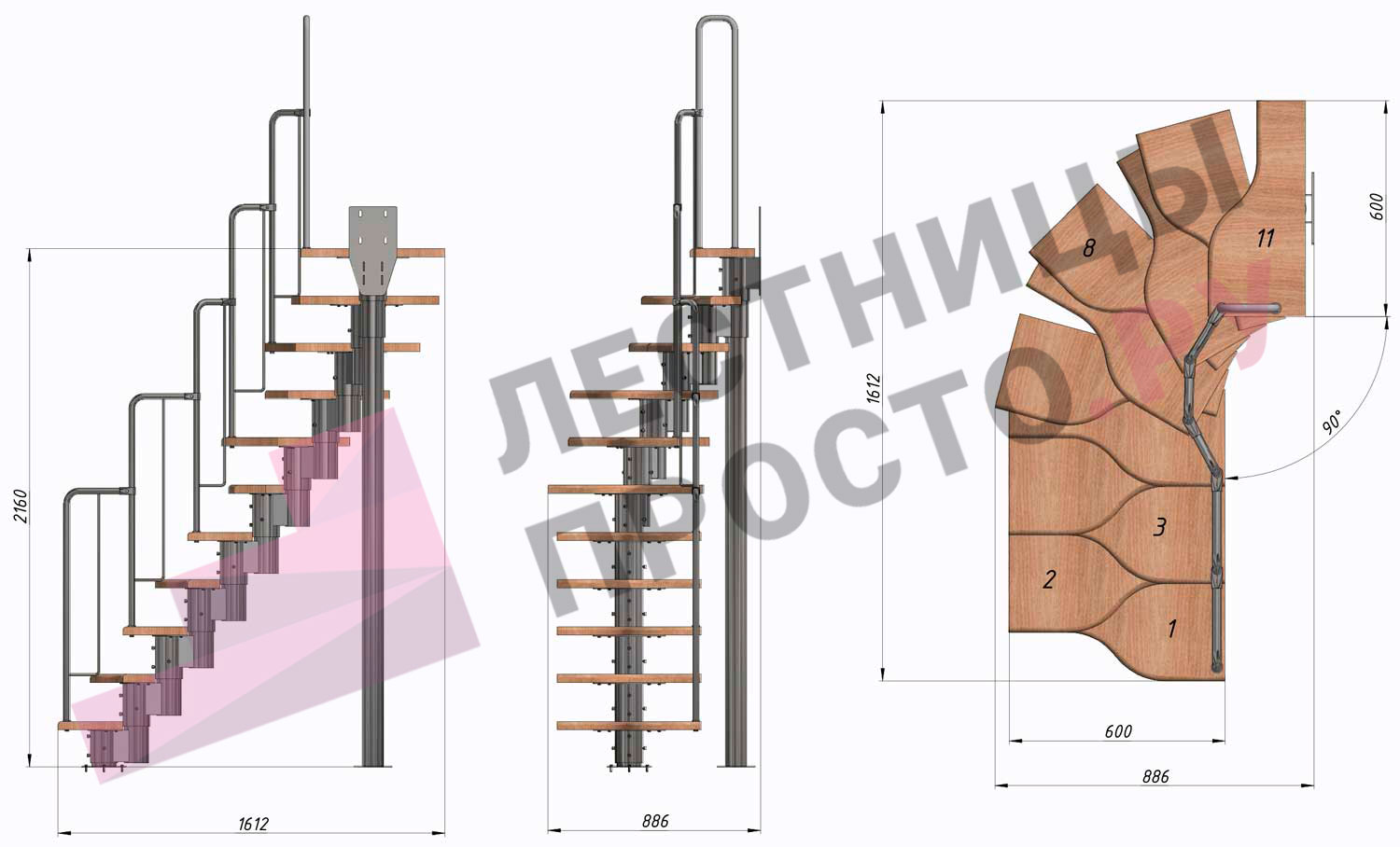 Высота лестницы 1980 - 2880 (11 ступеней) мм