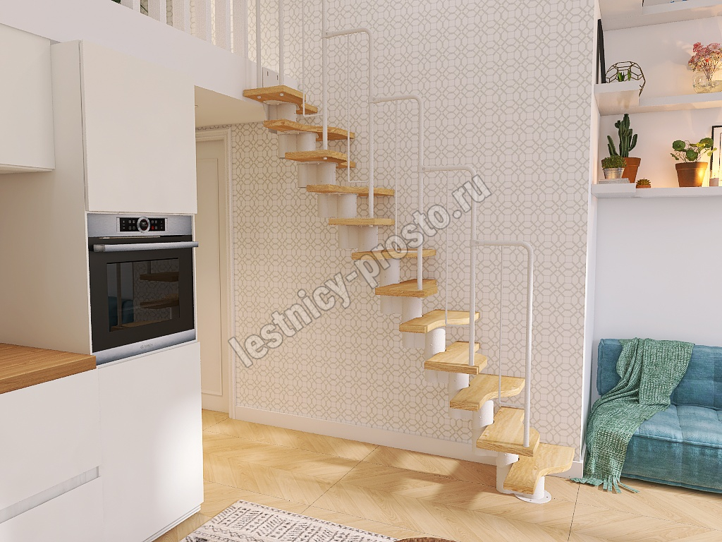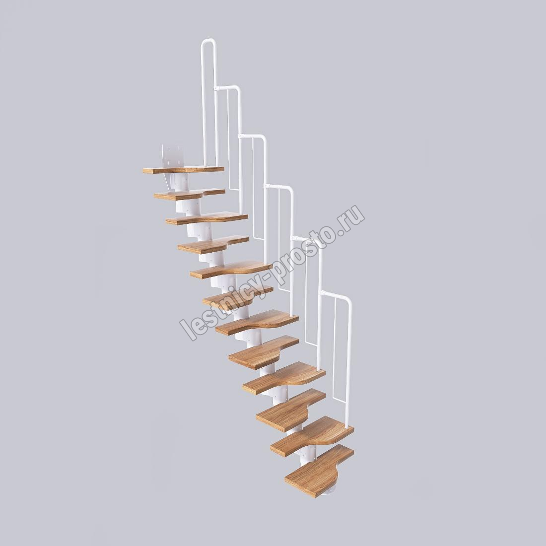 Лестница Prosto Urban White гусиный шаг 600 мм, h234-336 см (13 ступеней), бук