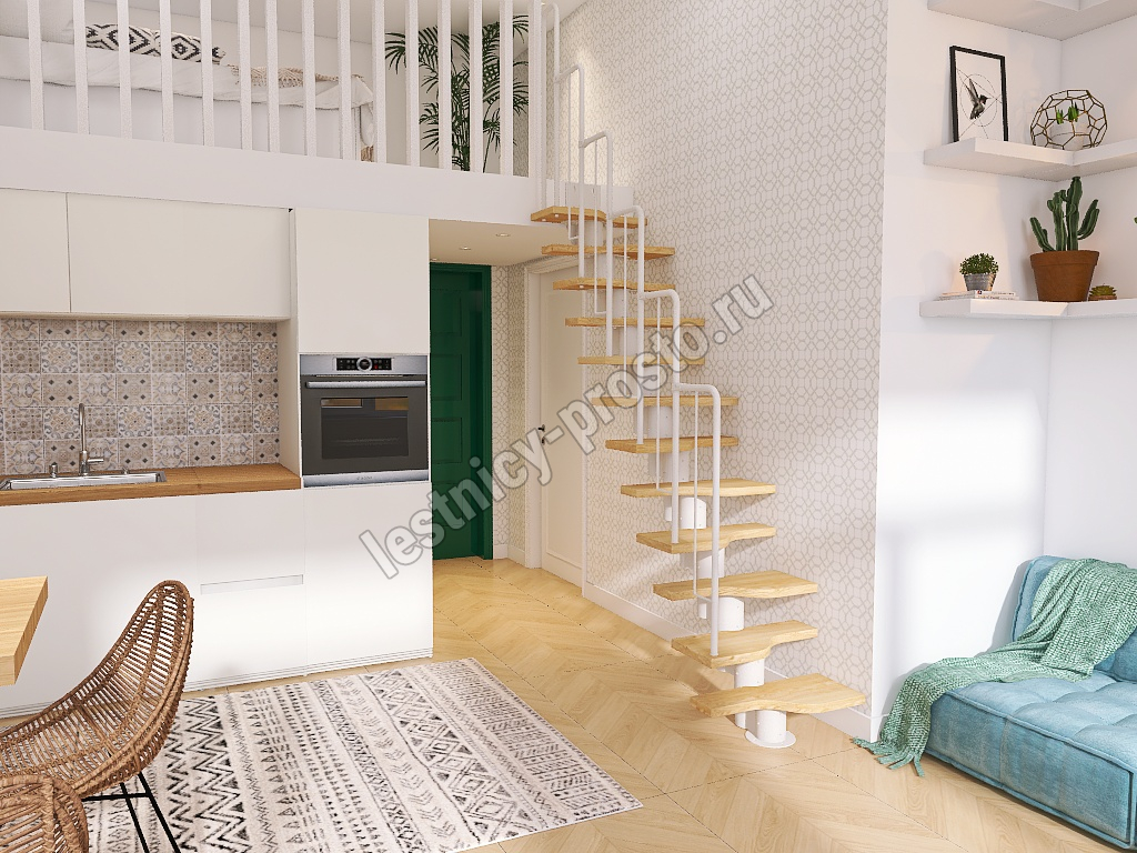 Лестница Prosto Urban White гусиный шаг 700 мм/Ступени из берёзы мультиплекс
