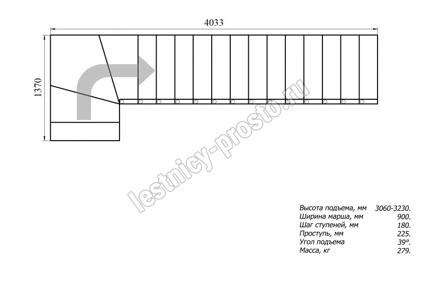 Высота лестницы 3060 - 3230 мм