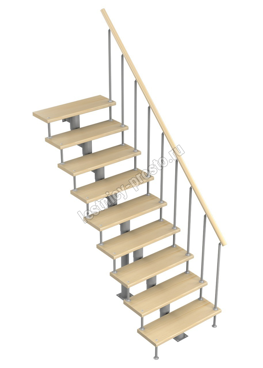 Модульная лестница Стандарт 2025-2115, Серый, Лиственница, Нержавеющая сталь