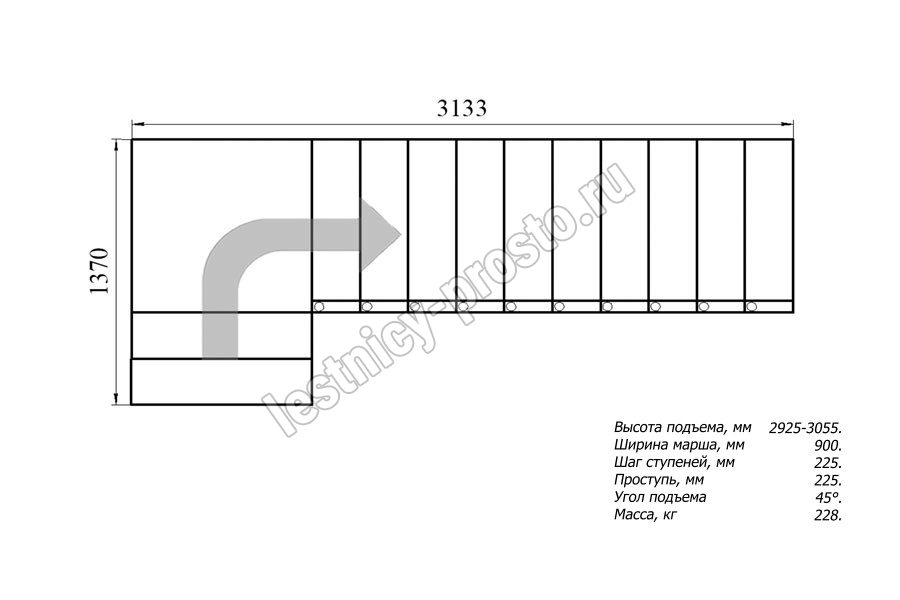 Модульная лестница Статус 225 2925-3055, Белый, Бук, Нержавеющая сталь