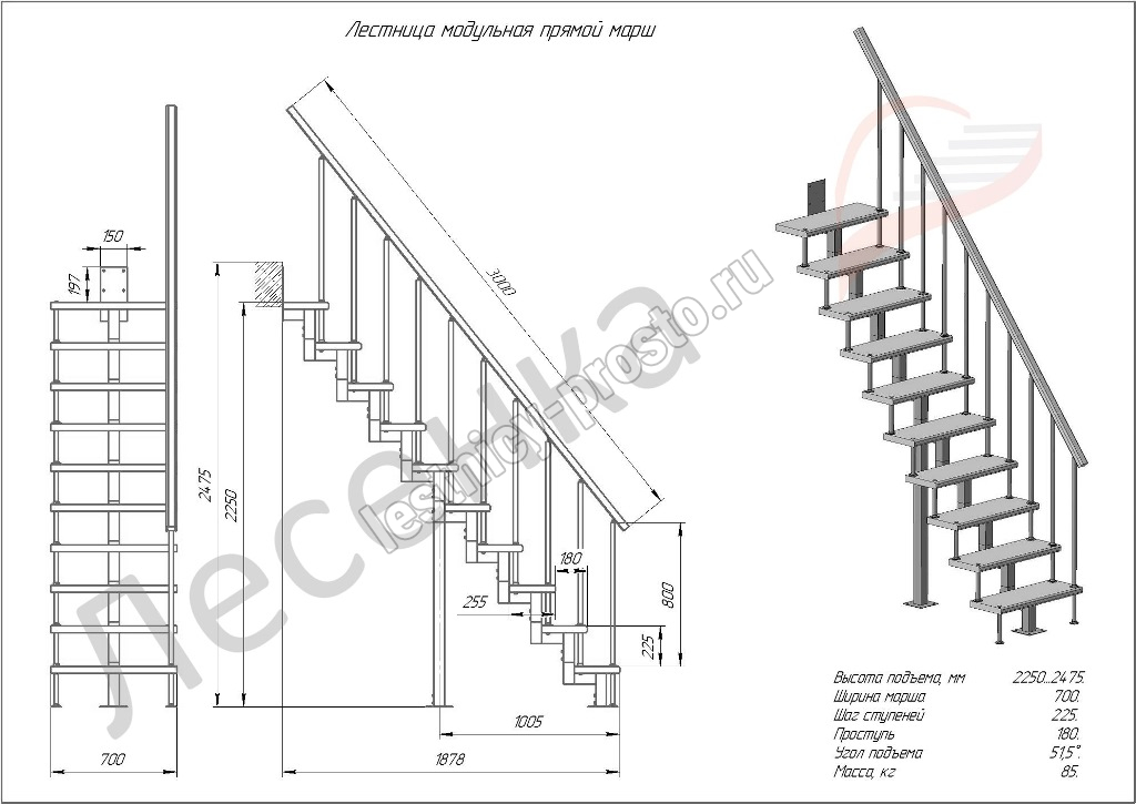 Малогабаритная модульная лестница состоит из множества идентичных деталей, называемых модулями. Она представляет собой удобную, практичную, современную конструкцию, которая удачно дополнит любой интерьер. Дополнительное преимущество модульных лестниц – возможность установки в практически любом помещении. Отличительная особенность – оригинальный дизайн. Компания "Лестницы-просто.ру" имеет патент на изготовление лестниц с квадратным профилем. Только у нас Вы сможете приобрести лестницу данной конструкции.