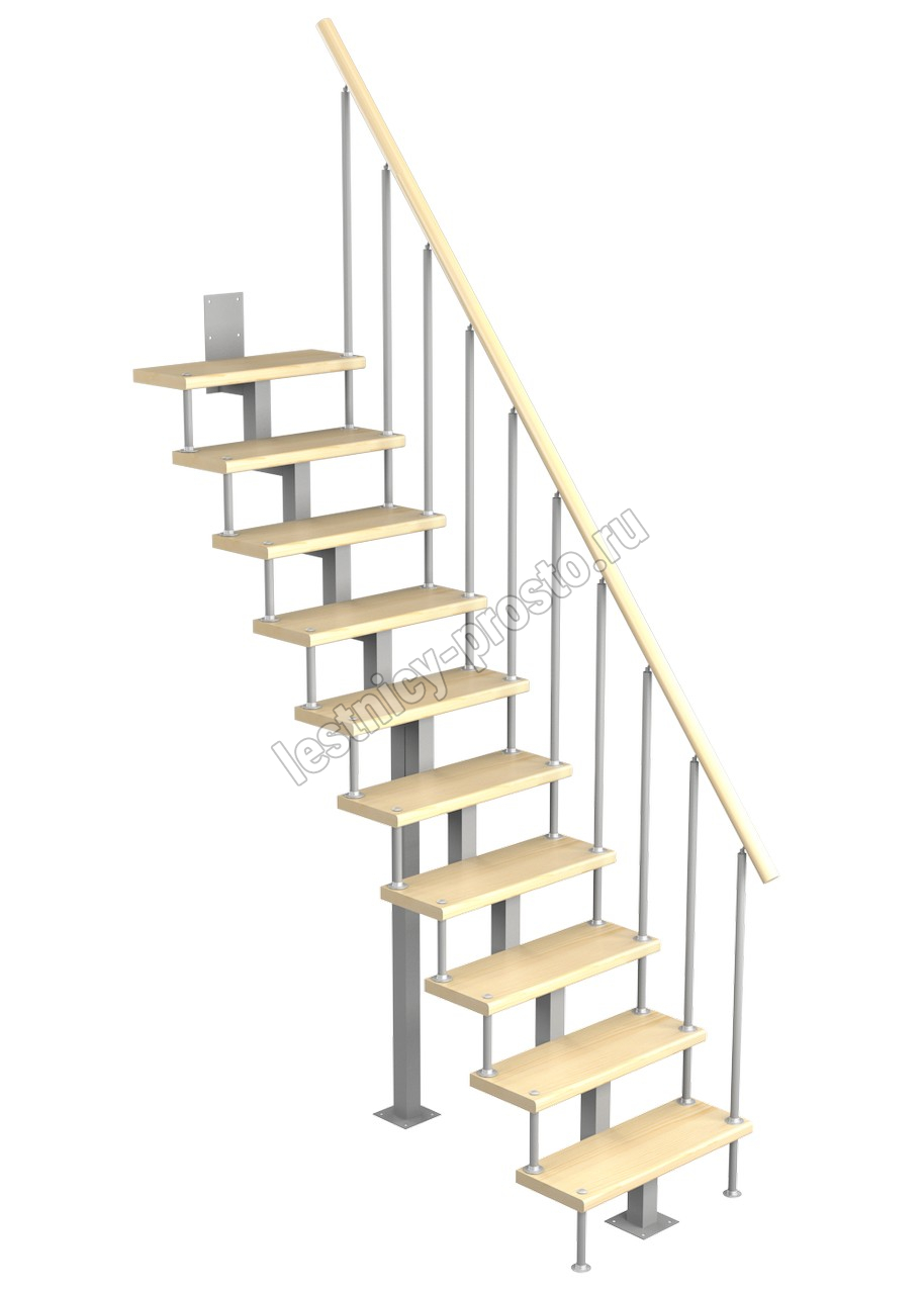 Модульная малогабаритная лестница Линия 2250-2475, Серый, Сосна, Крашеная, Без Ступений