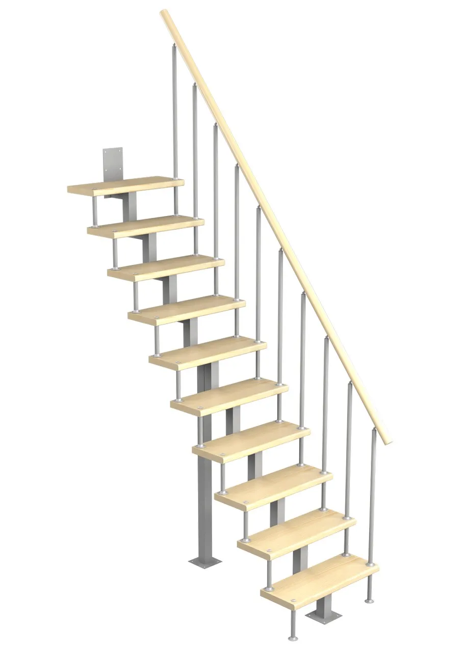 Модульная малогабаритная лестница Линия 2475-2700, Серый, Бук, Нержавеющая сталь