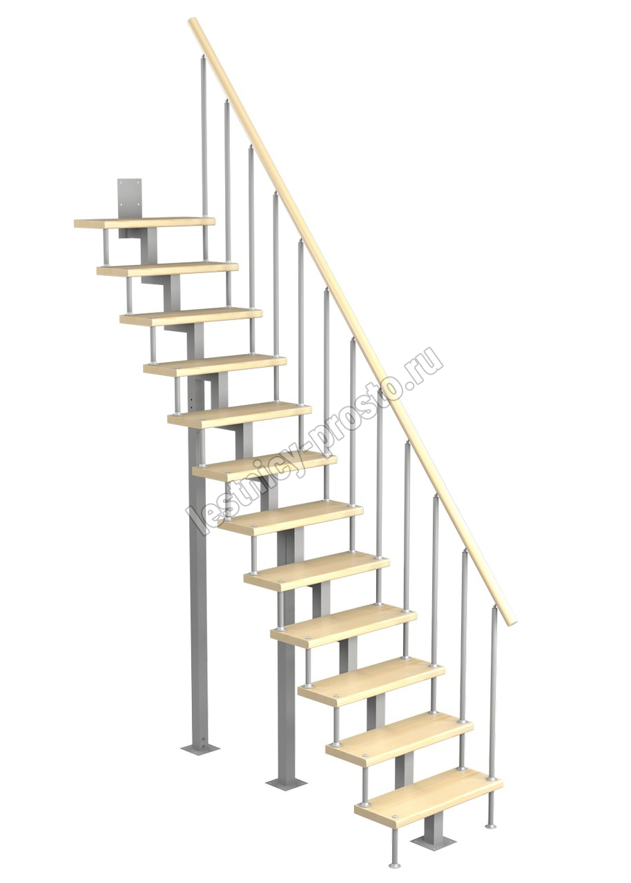 Модульная малогабаритная лестница Линия 2700-2925, Серый, Бук, Крашеная