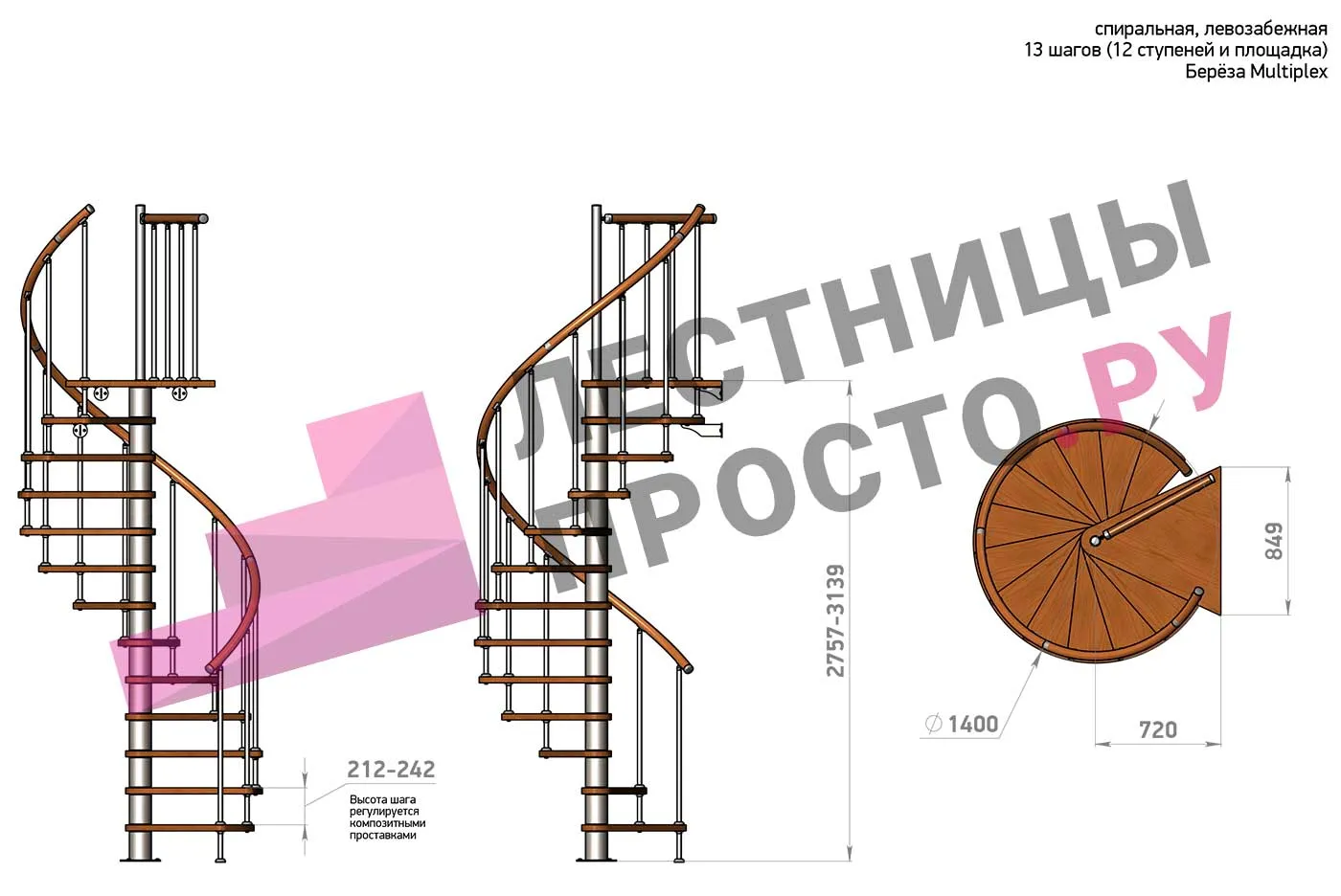 Винтовая лестница Prosto Spiral Black D140см, h275.7-313.9 см