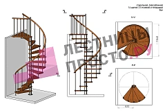 Винтовая лестница Prosto Spiral Black D160см, h303.9-348,1 см, бук