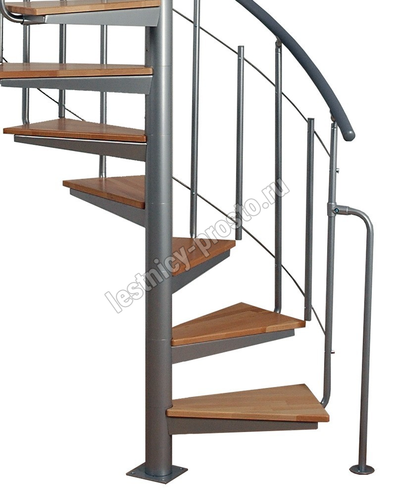 Винтовая лестница Solo vertical серебро, натуральный бук