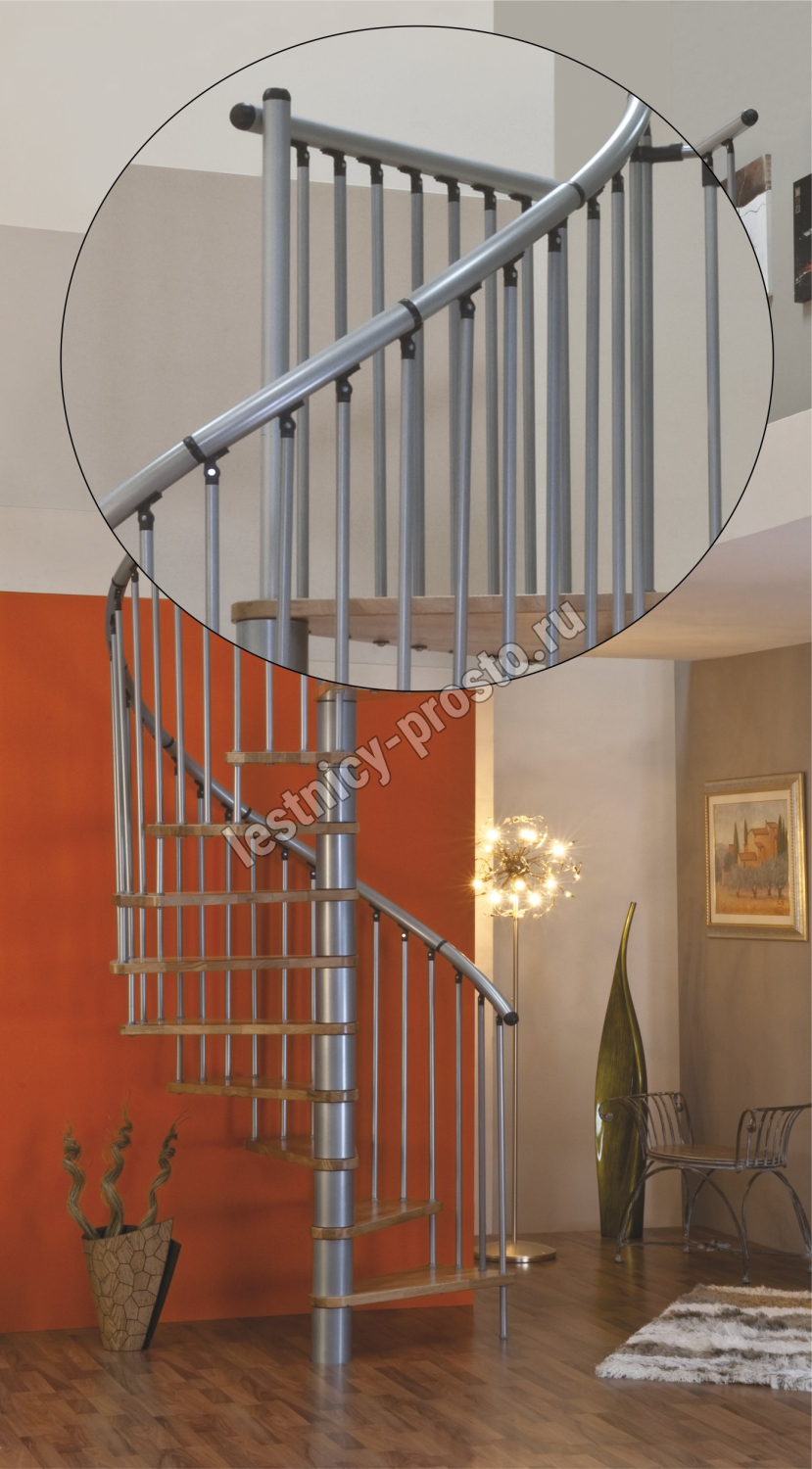 Винтовая лестница SPIRAL EFFECT d140 см, серебро, лакированный бук