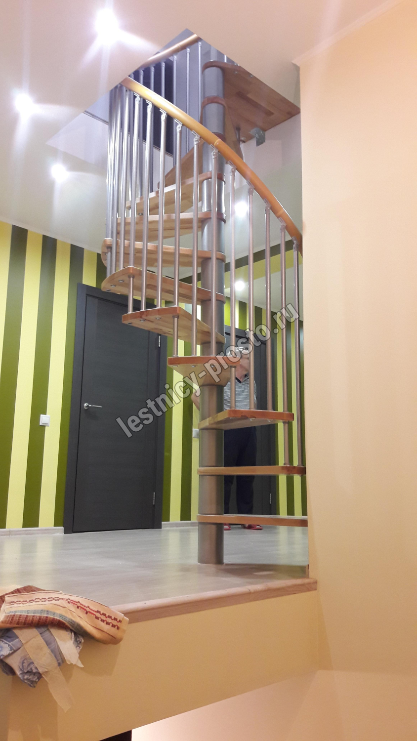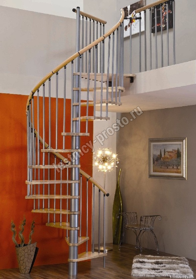 | Винтовая лестница SPIRAL WOOD d140 см, серебро, лакированный бук |
