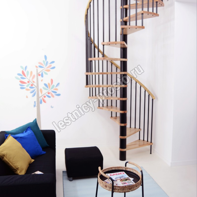 | Винтовая лестница SPIRAL WOOD d120 см, черная, лакированный бук |