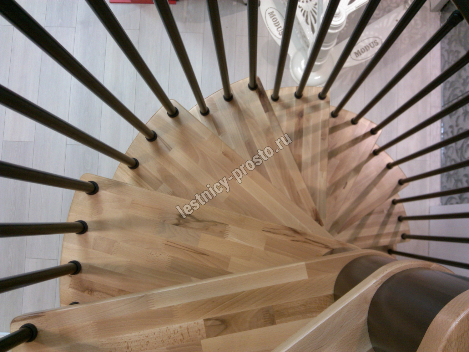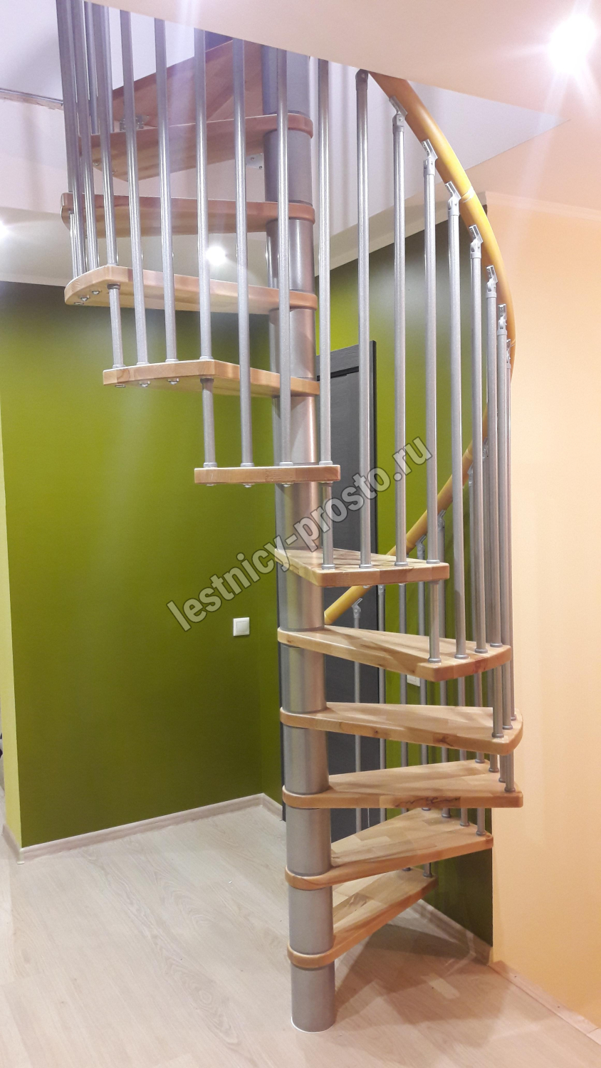| Винтовая лестница SPIRAL WOOD d160 см, серебро, лакированный бук |