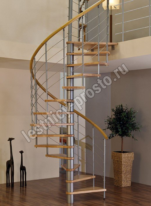 Винтовая лестница Venezia d120 см, серебро, дуб лакированный