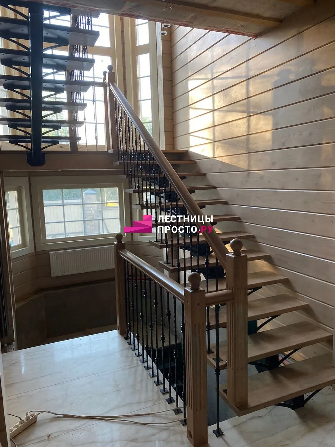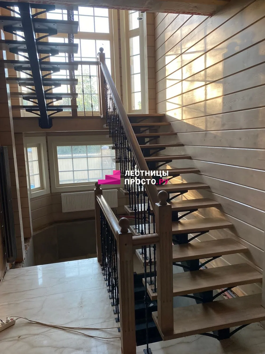Лестница на центральном металлическом каркасе с просторной площадкой
